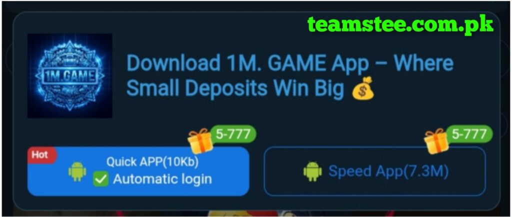 In Pakistan’s competitive new earning app market, 1M Game has proven itself as reliable and profitable. Its frequent updates keep the experience fresh and engaging. The platform encourages safe and responsible gaming. Overall, 1M Game offers a unique blend of fun and real income. It is an ideal choice for anyone seeking a secure earning game experience.