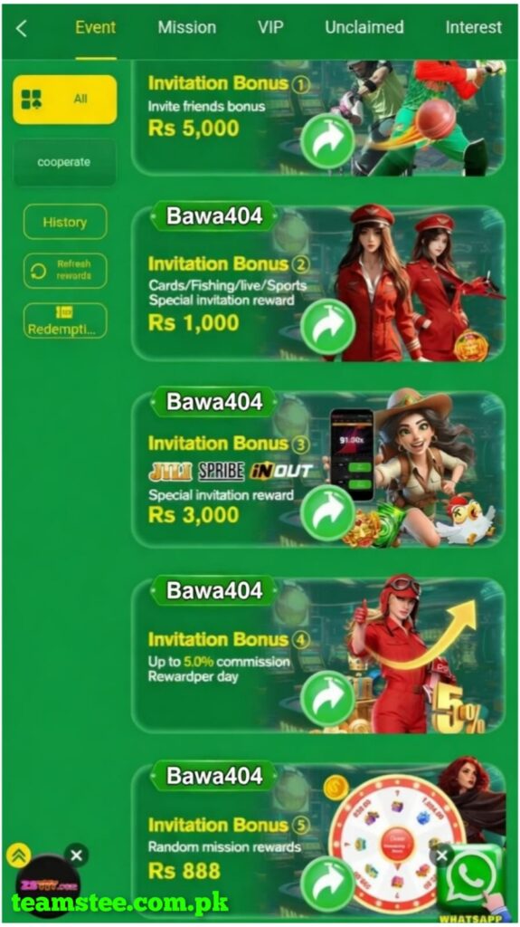 Smart users grab welcome bonuses to boost their start right away. Friends share referral links for mutual gains effortlessly. You access lotteries, Teen Patti, and more in one place. Withdrawals hit Jazz Cash fast, often in minutes. Bawa404 Game makes gaming profitable for beginners too. also try Done55 Game.