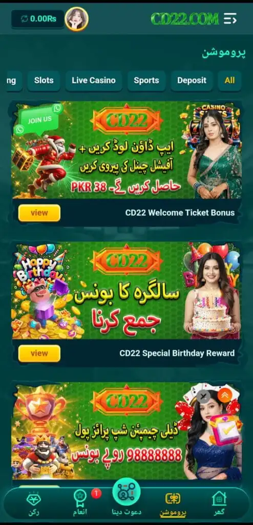 Compared to many other casino apps in Pakistan, CD22 Game offers a cleaner interface and faster loading times. It has good variety and supports local payment methods well. While some apps have more games, it stands out because of its simple design and quick withdrawals.