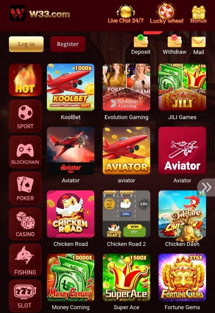W33 hosts a mix of luck and skill games that appeal to different tastes.