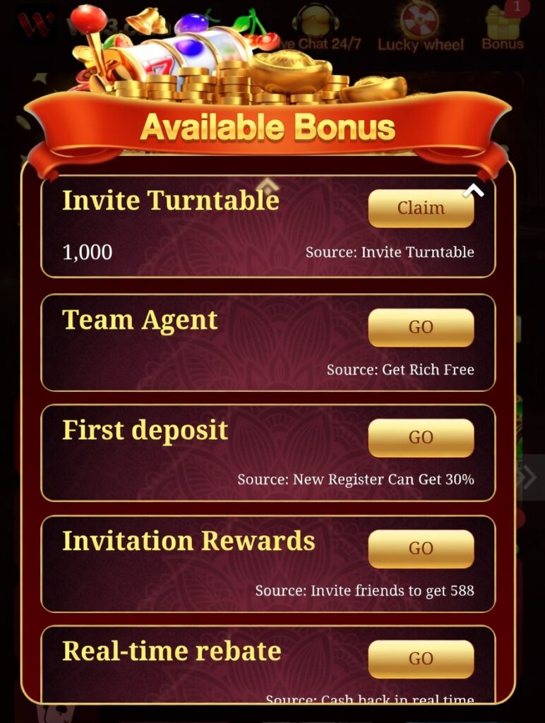 Welcome bonuses give you Rs577 PKR just for signing up and verifying. Deposit matches can double your first top-up up to Rs1000. Referral rewards provide commissions when friends join and play. Daily logins offer free coins or spins without extra cost.